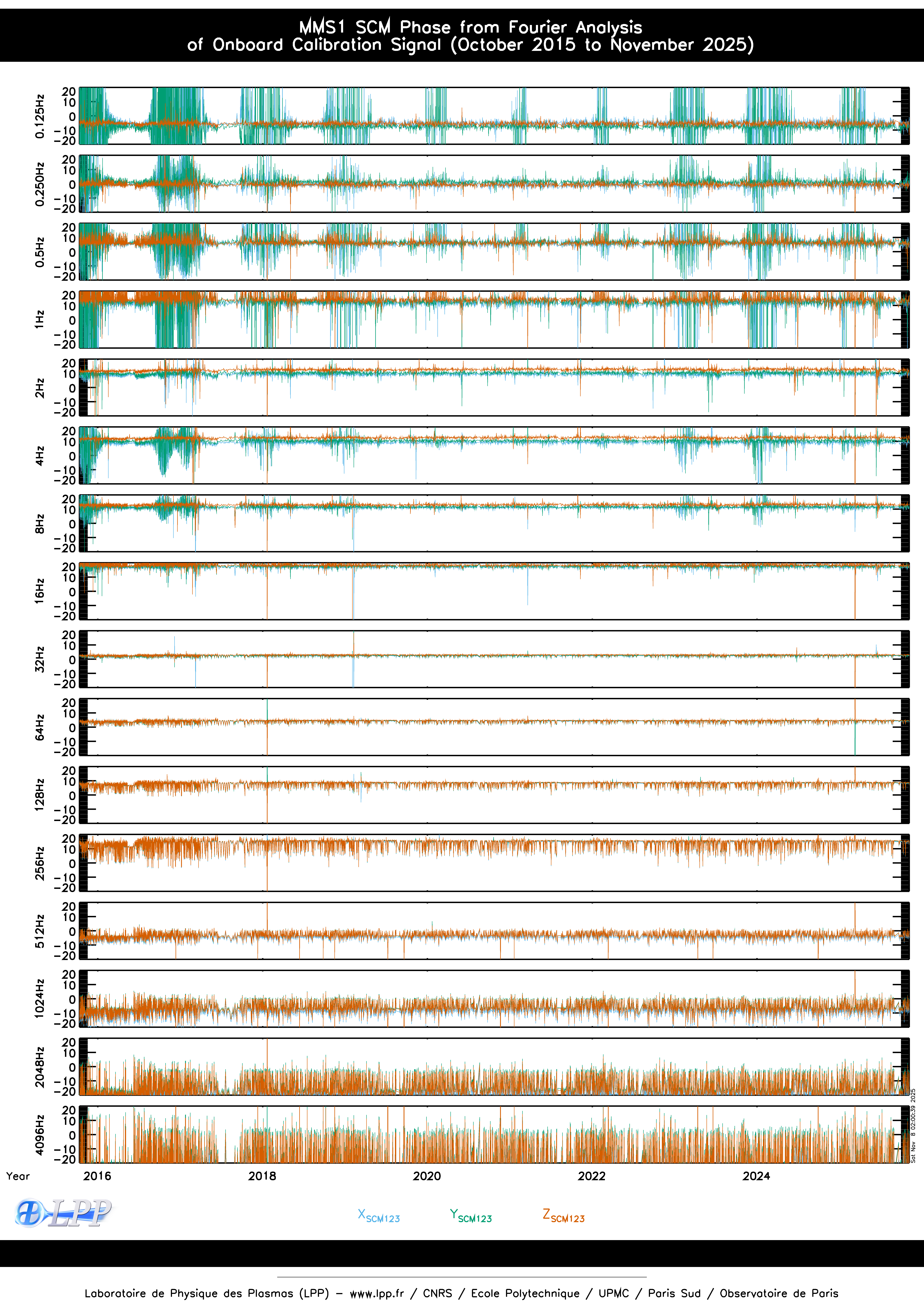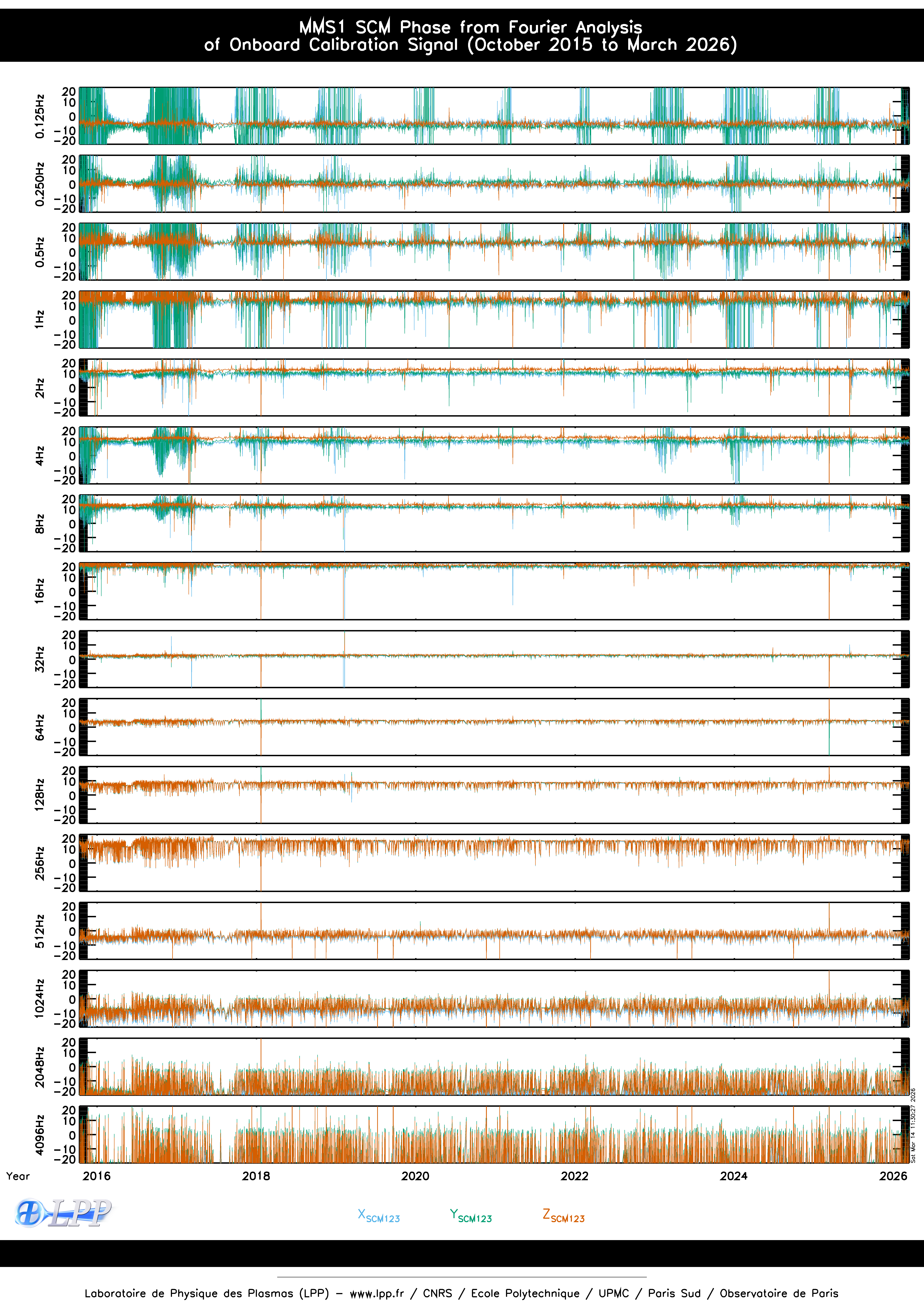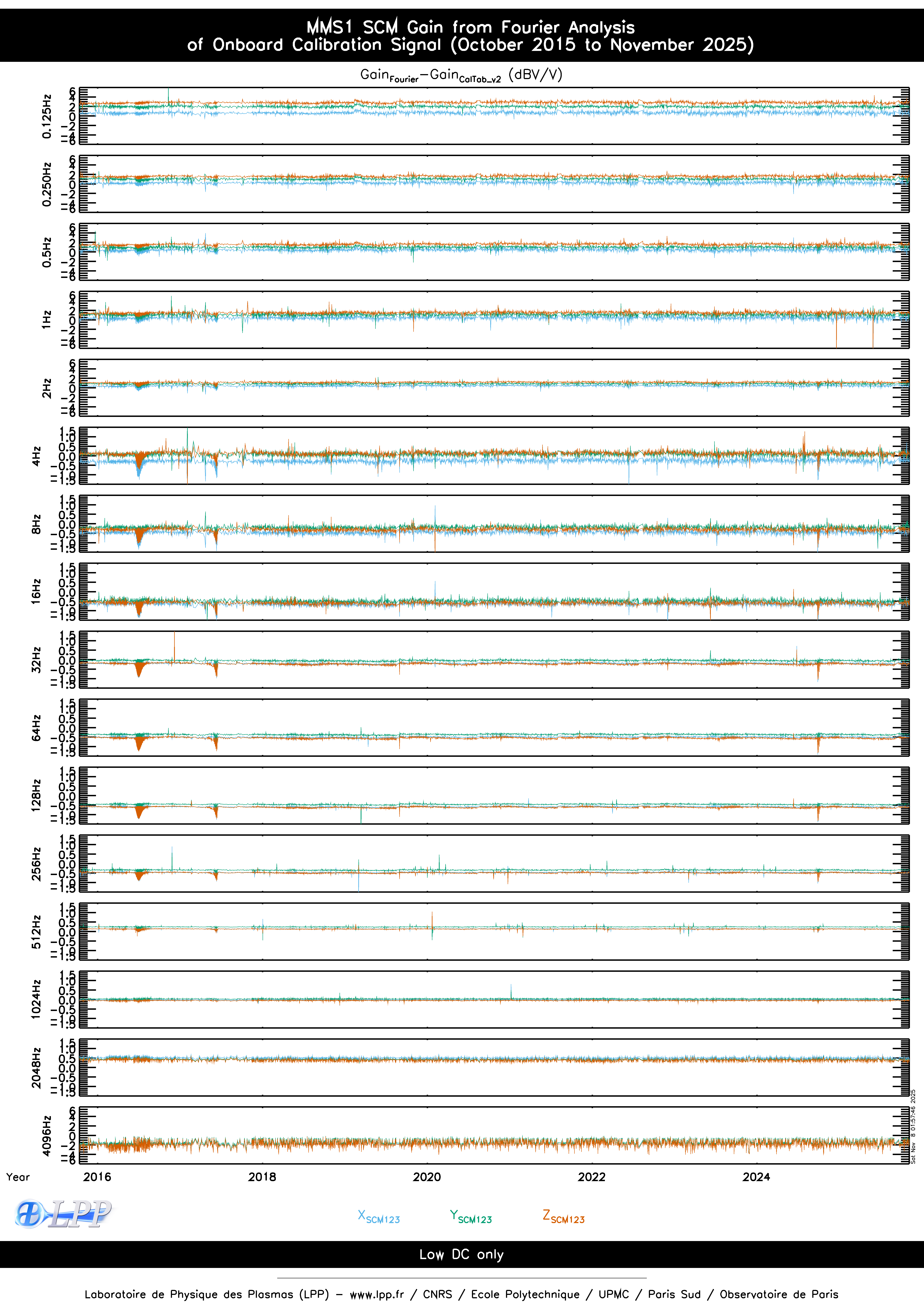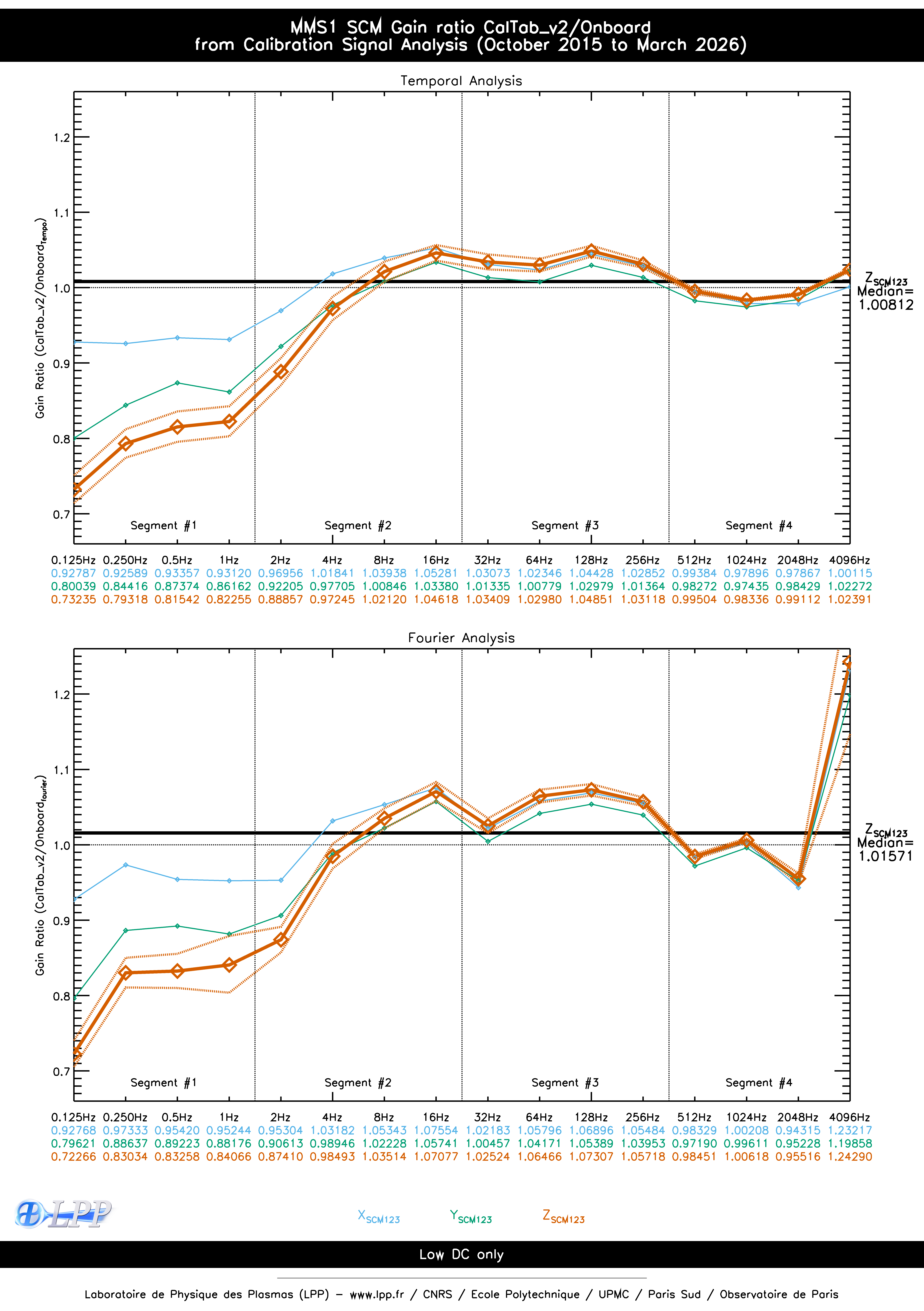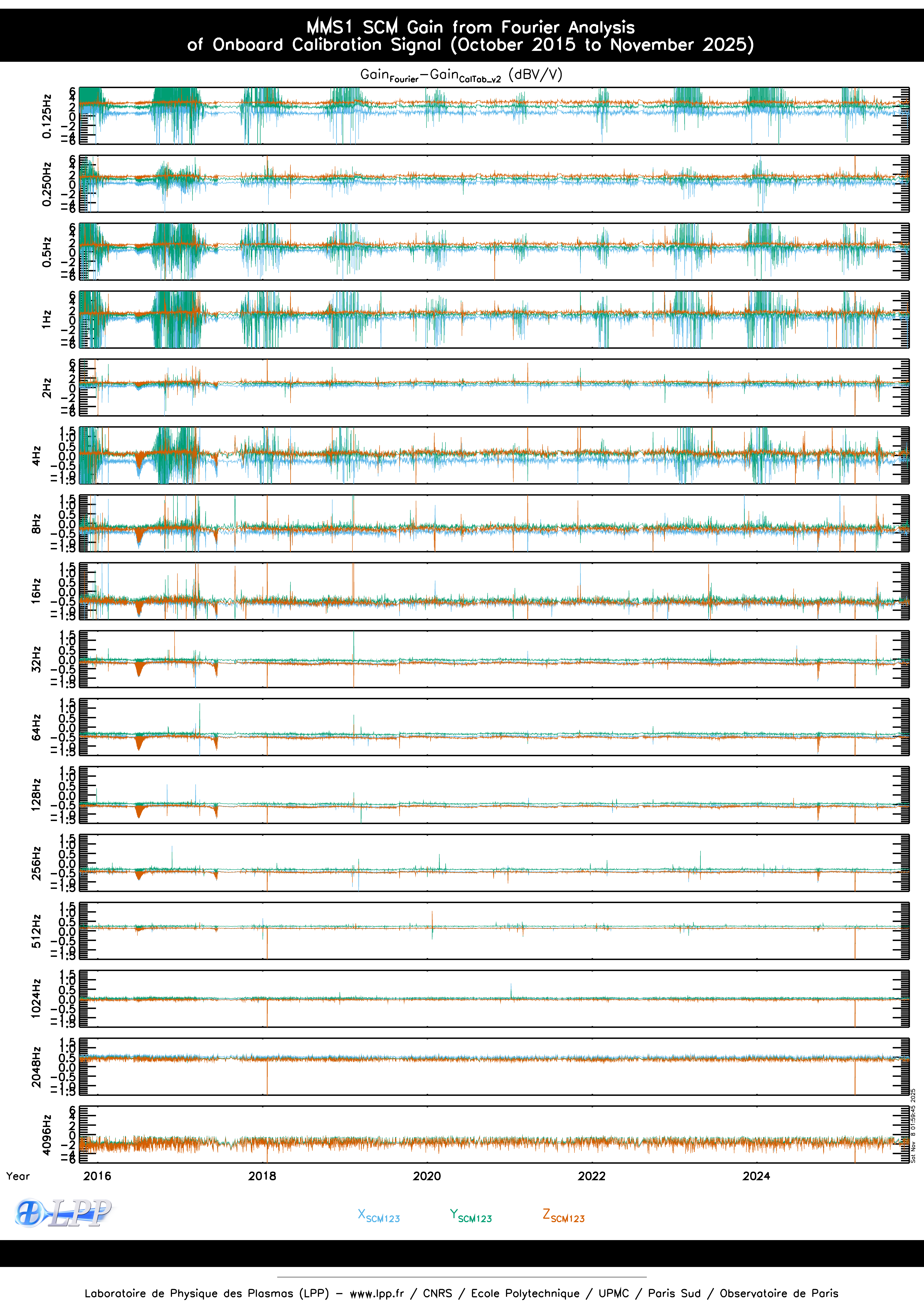 MMS1 SCM ONBOARD CALIBRATION SIGNAL FOURIER ANALYSIS SINCE OCTOBER 2015