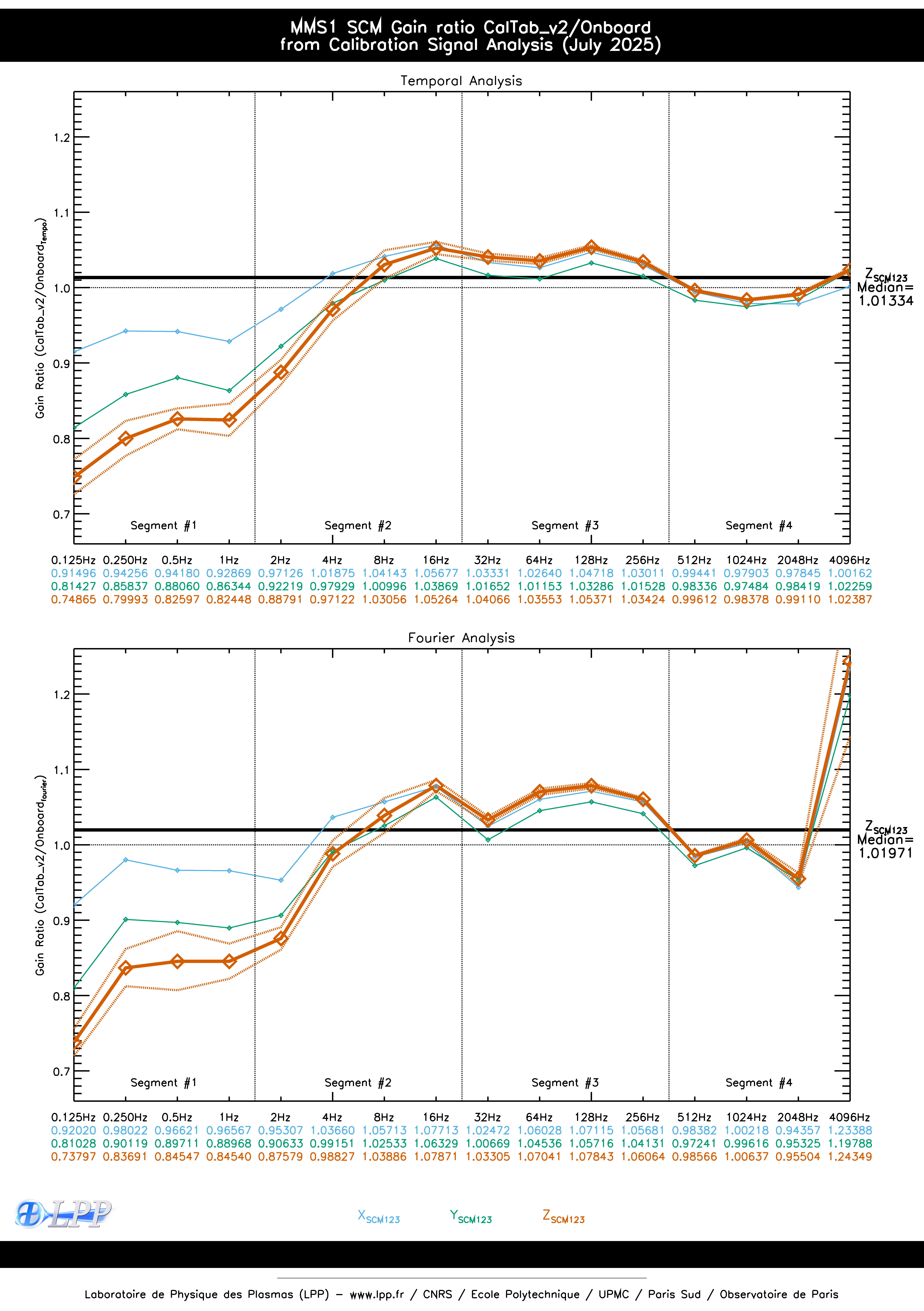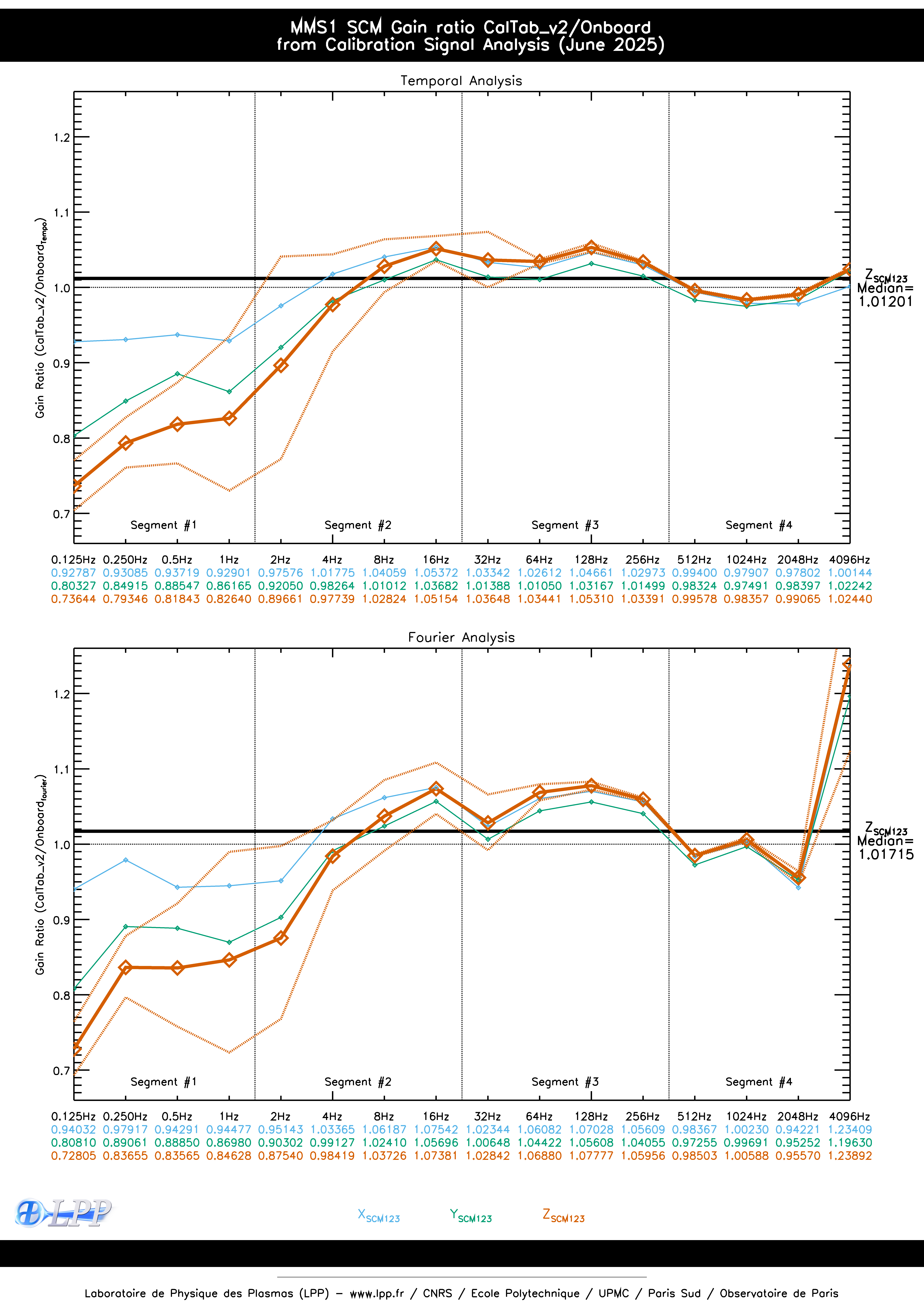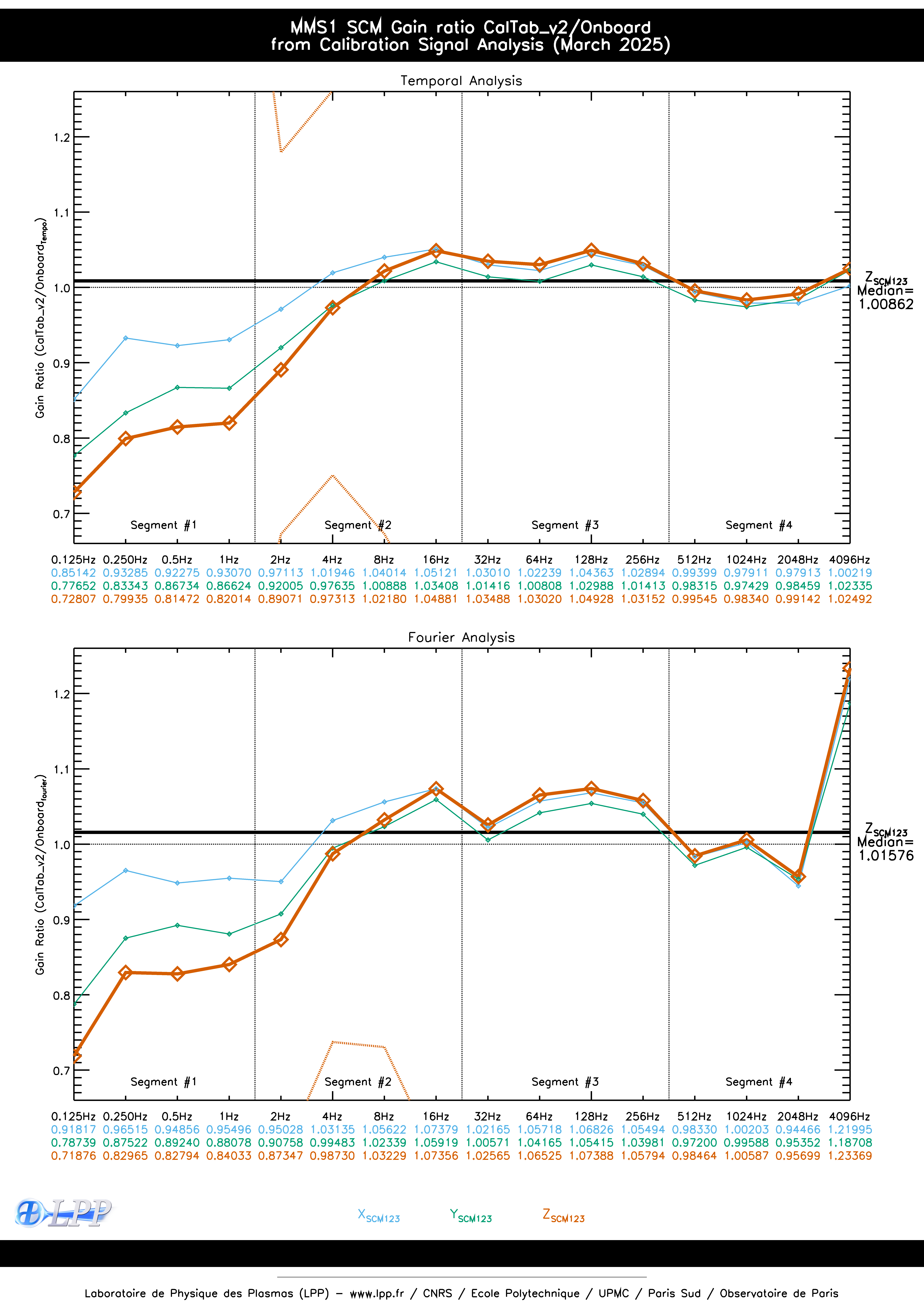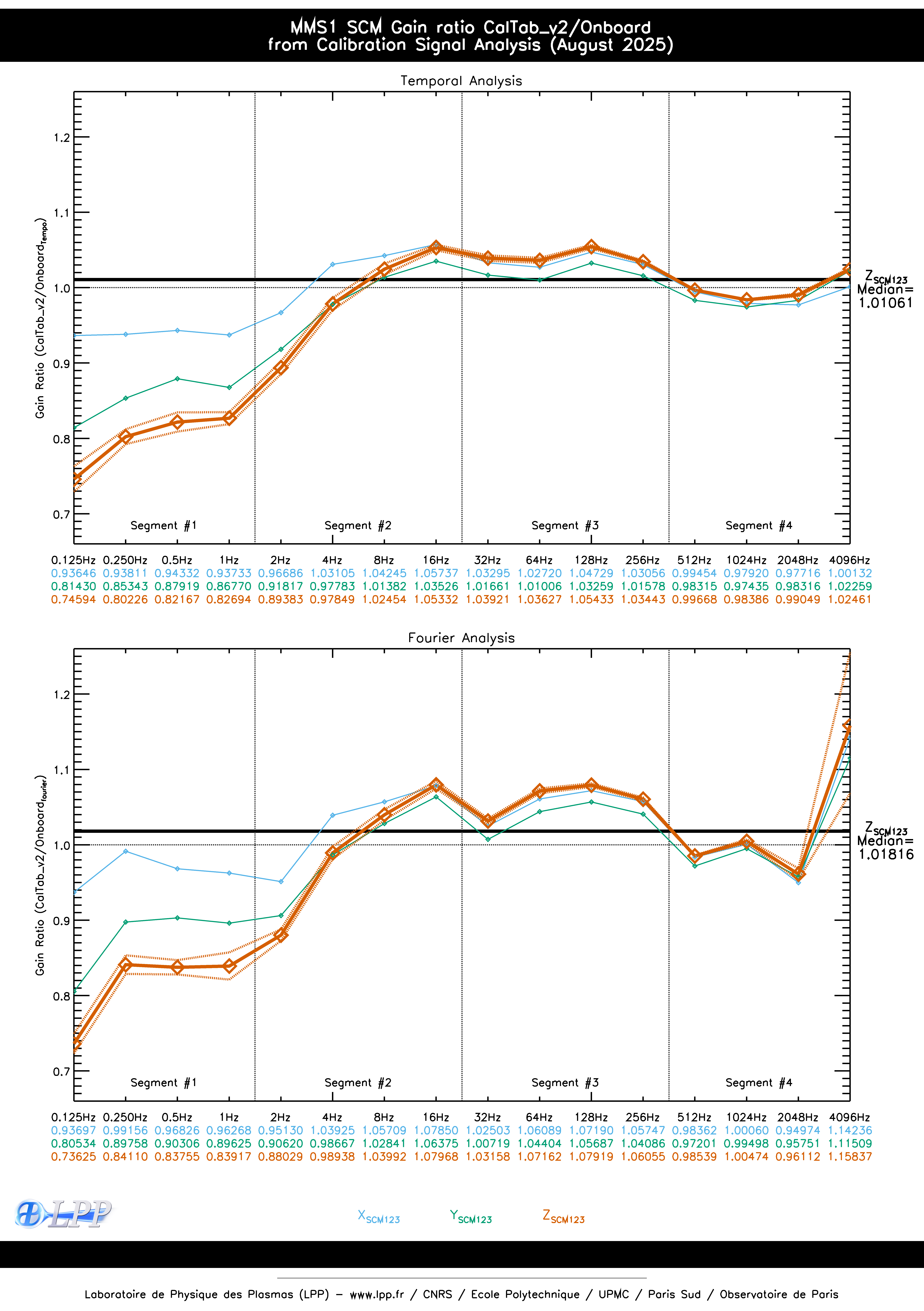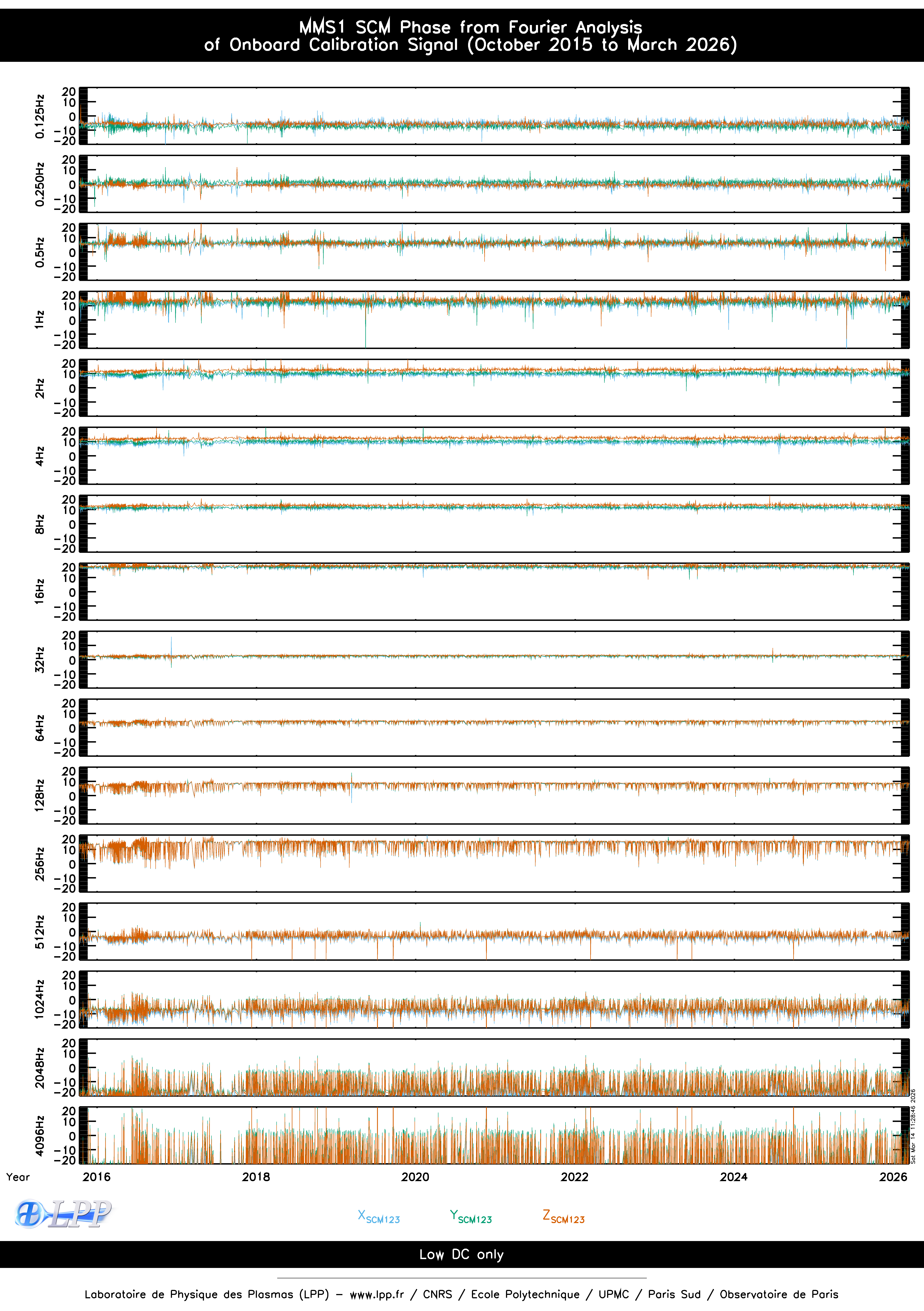 MMS1 SCM ONBOARD CALIBRATION SIGNAL FOURIER ANALYSIS SINCE OCTOBER 2015