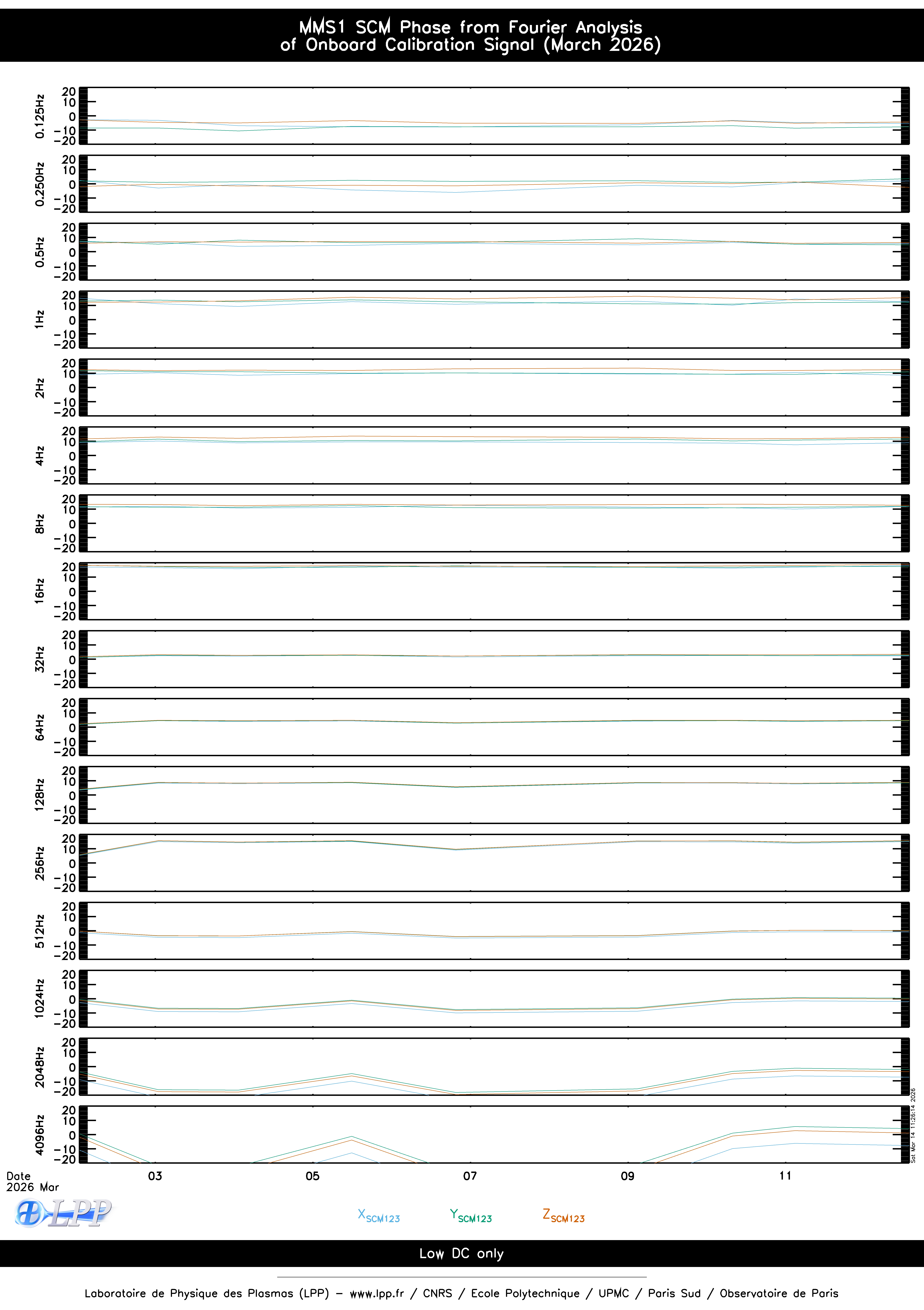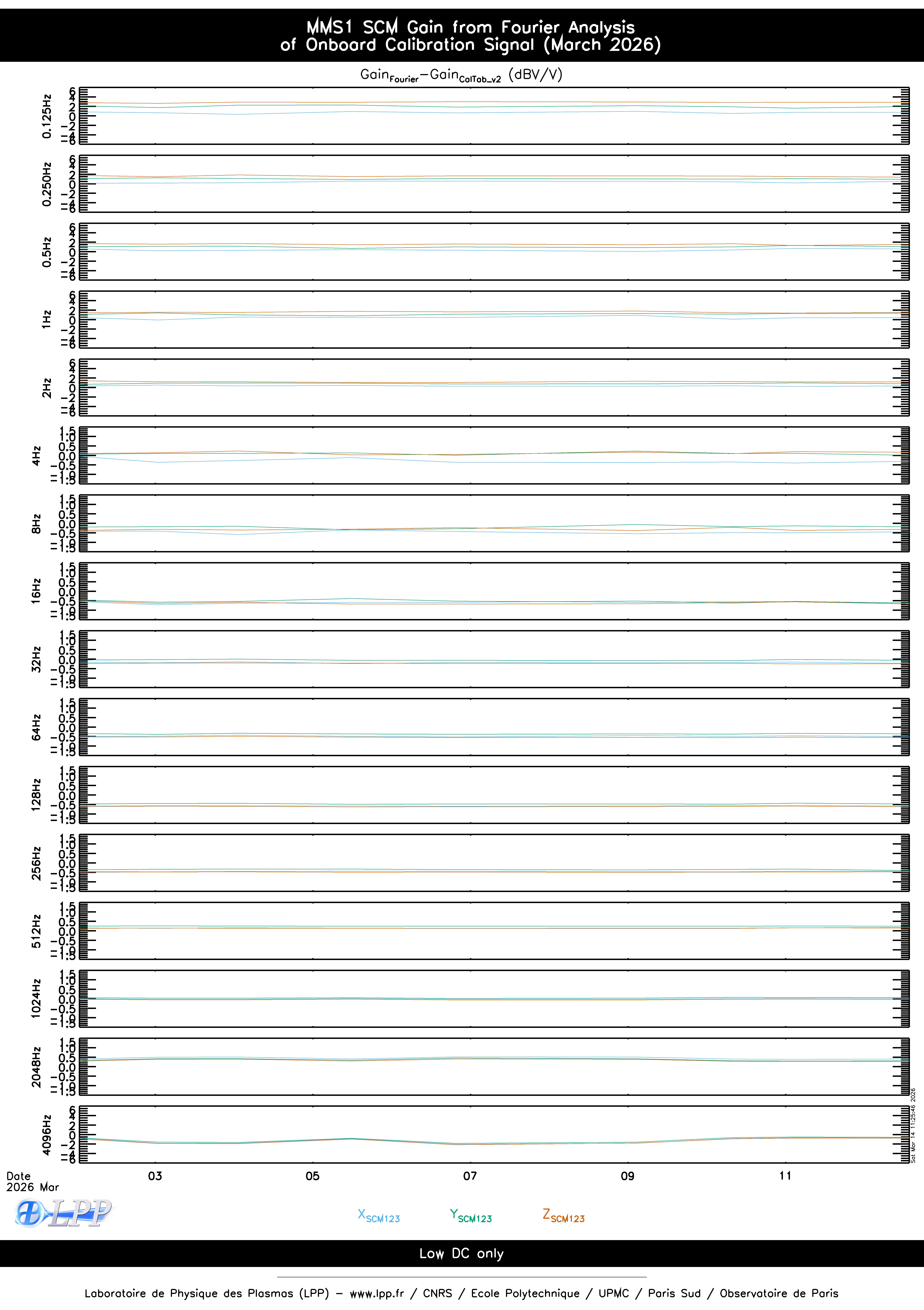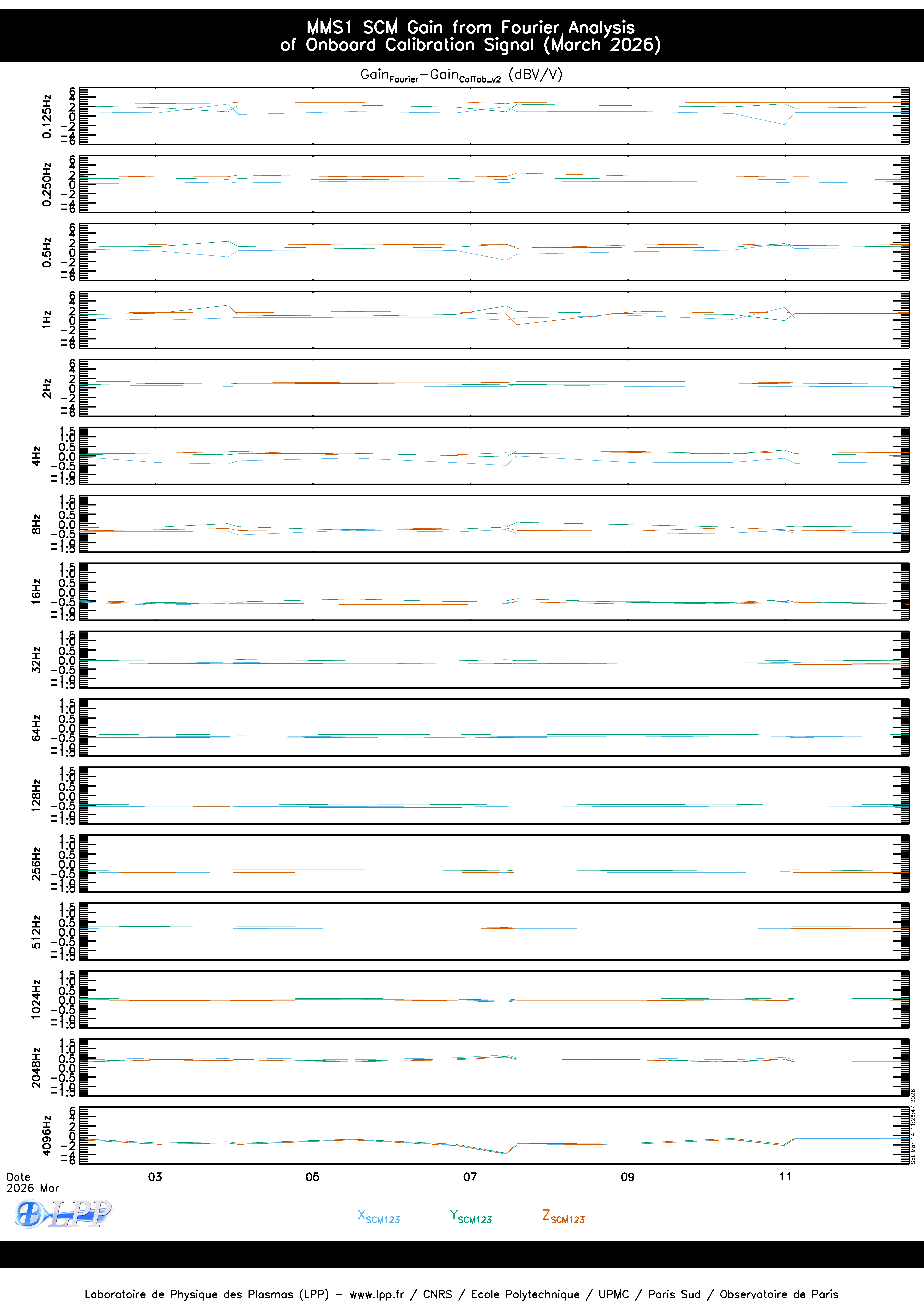MMS1 SCM ONBOARD CALIBRATION SIGNAL FOURIER ANALYSIS FOR MARCH 2026