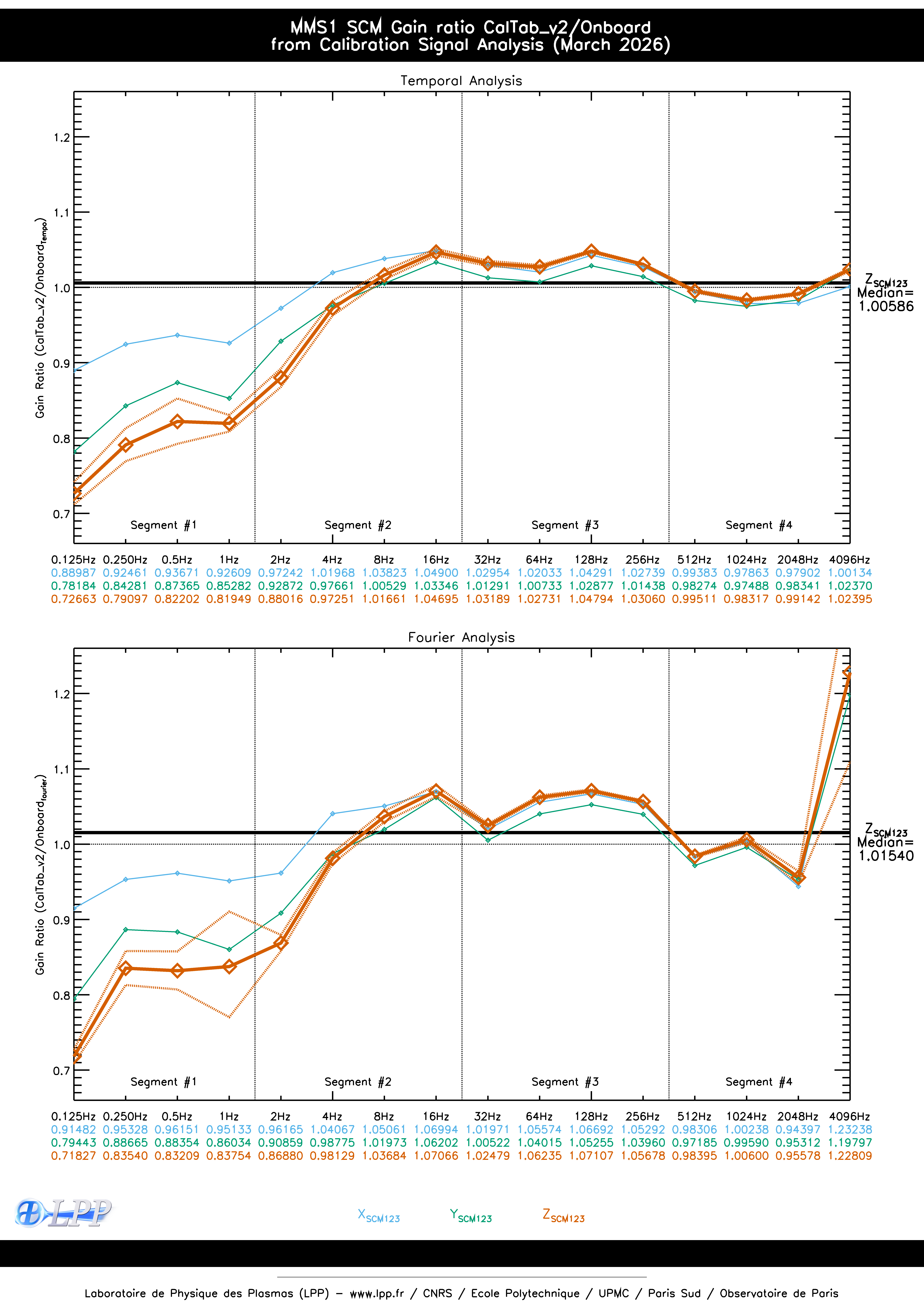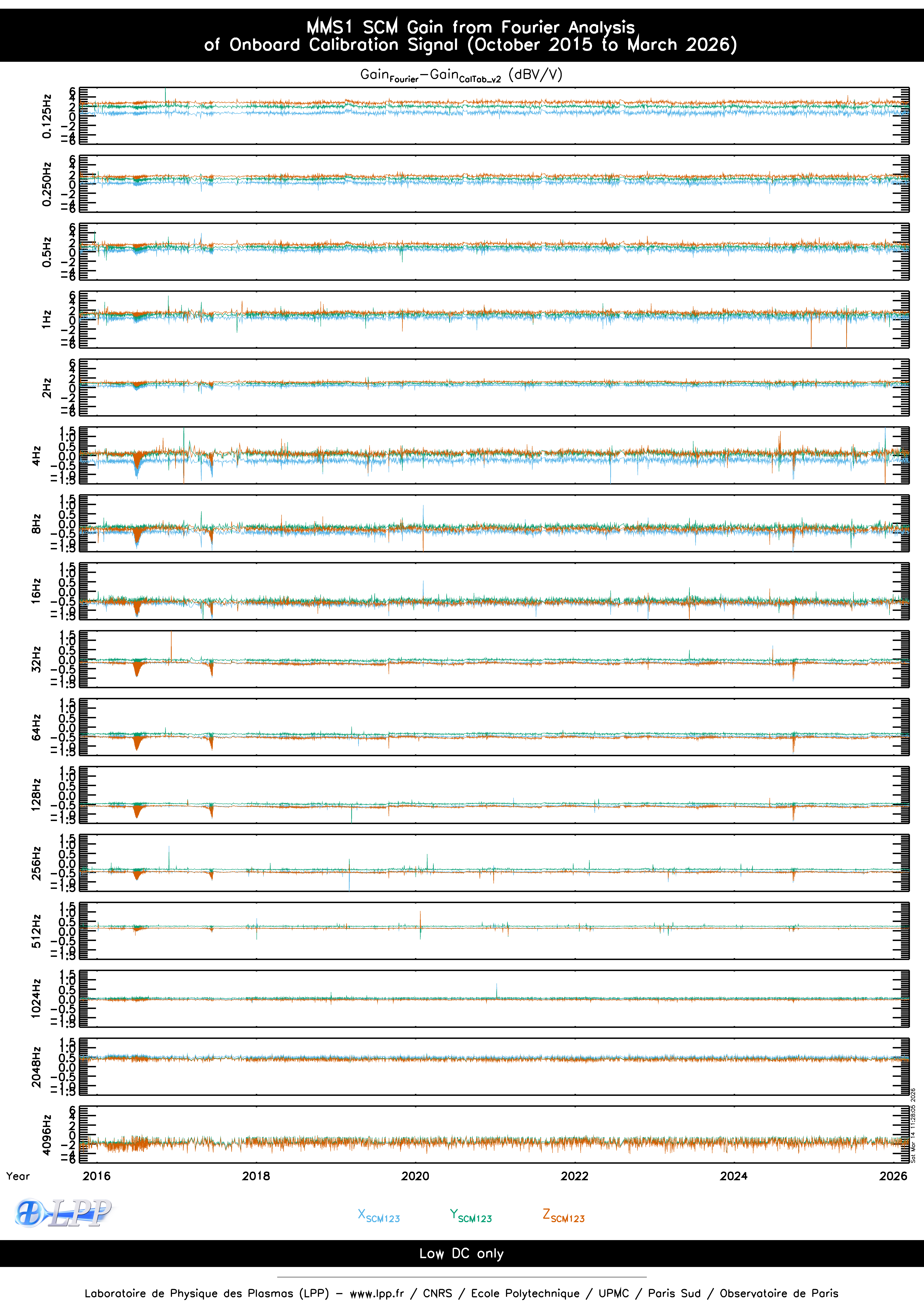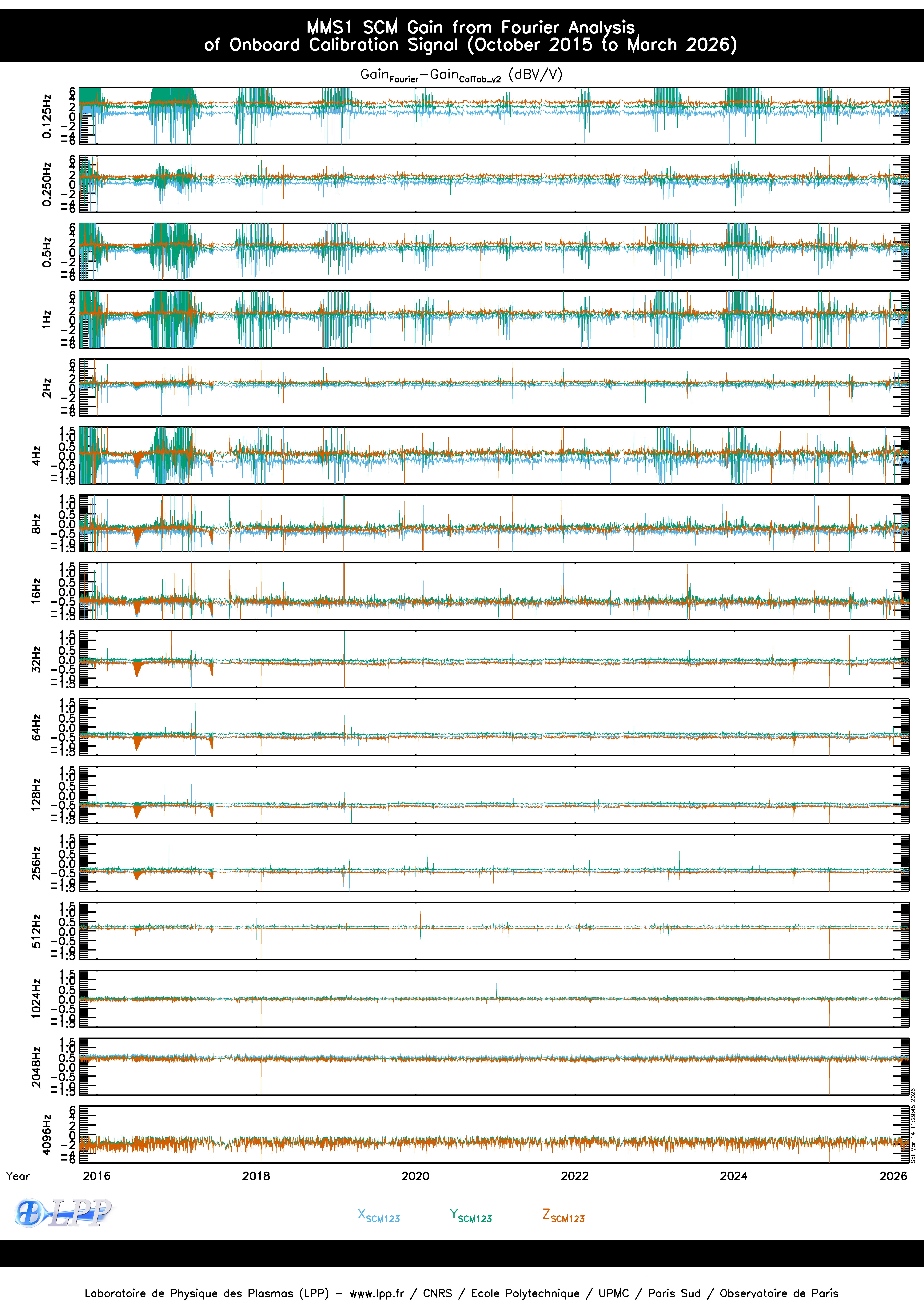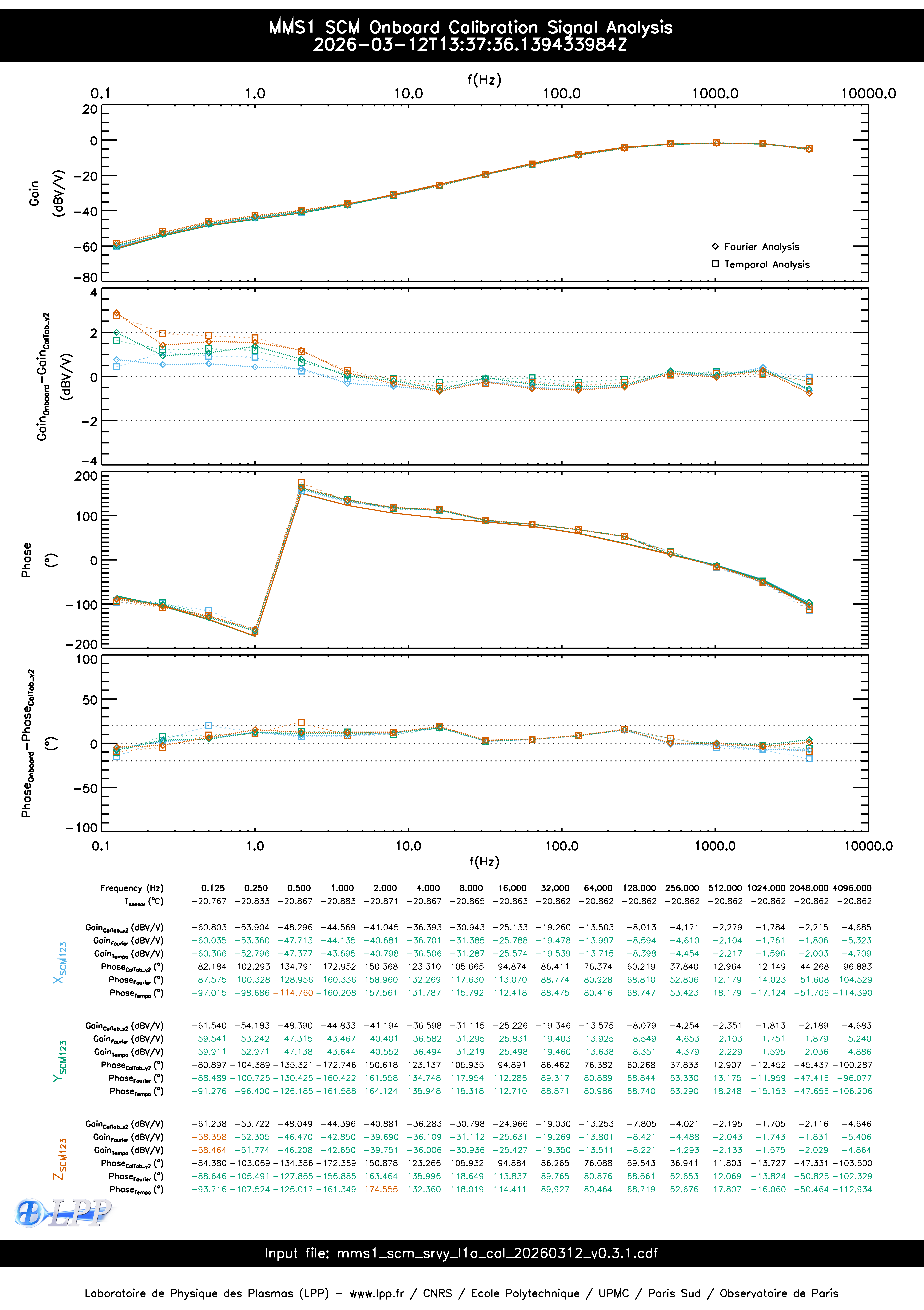 MMS1 SCM ONBOARD CALIBRATION SIGNAL FOURIER ANALYSIS FOR MARCH 2026